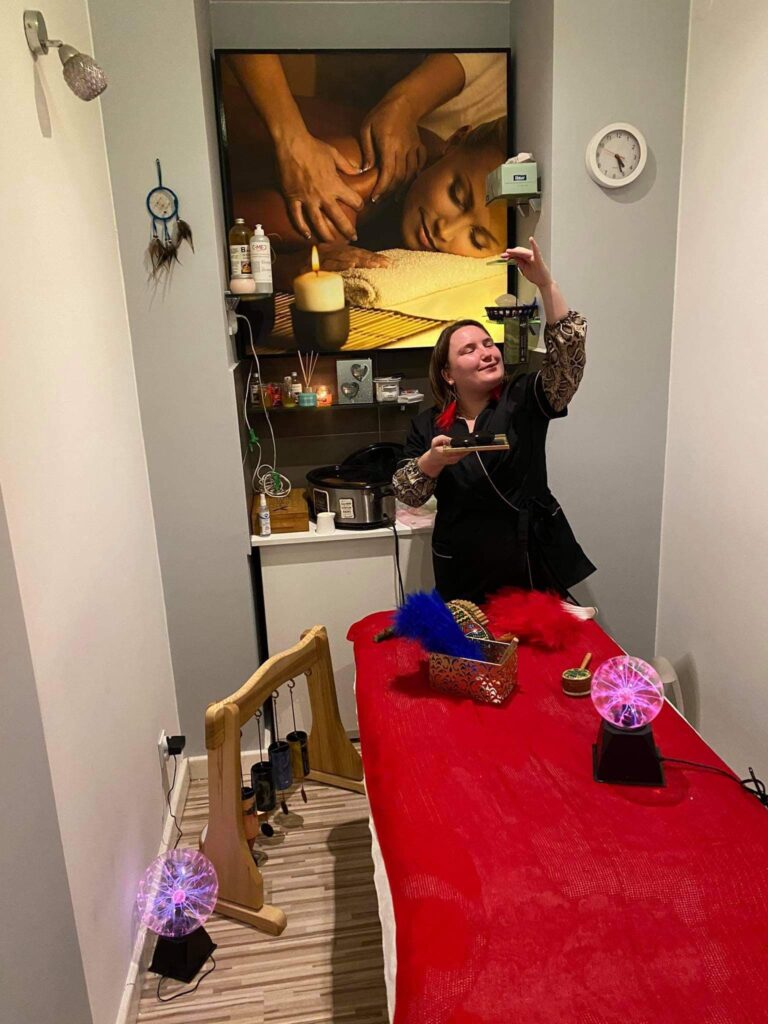 Lata poszukiwań przystani gdzie dostanę faktyczną pomoc w napięciach mięśni. Doprowadziło mnie do tego momentu, gdzie na własnej skórze opracowałam oryginalne masaże. To wszystko, co byłam w stanie zrobić dla siebie, jestem w stanie podarować tym, którzy również tego potrzebują. Opracowałam autorskie receptury oparte na naturalnych produktach. Zgodnie z intuicją i własnym doświadczeniem tworzę metody radzenia sobie z napięciami i bólem. Inspirowana kultem szamańskim umiejętnie łączę dwa światy – duszę i ciało. Wierząc w holistyczne podejście do naszego ciała, pragnę wam przybliżyć i zaprosić do swojego królestwa. Podstawami i głównymi filarami Królewskiego dotyku jest zrozumienie, szacunek, otwarte serce i umysł.